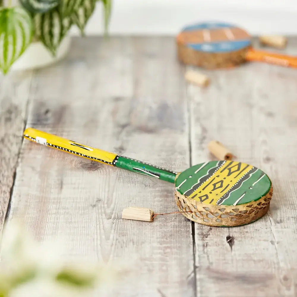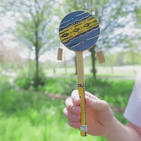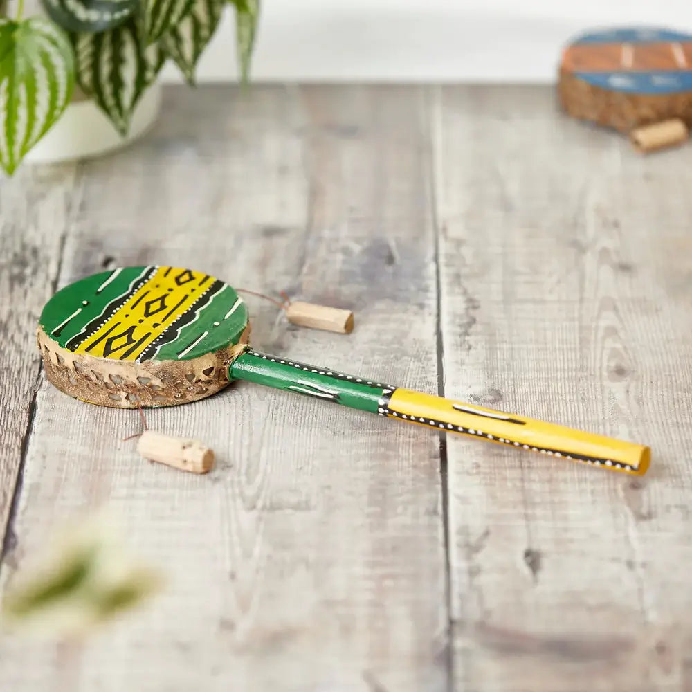 Nakuru Monkey Drum comes in assorted colour designs and has been handmade in Kenya, Africa. It is a Great-sounding musical instrument and makes for a perfect gift for any musician.. Whilst supervised, children can use the instrument to develop their fine motor skills as they move the handle between their hands. The bold mixed colours will capture their attention and the wonderful sound will keep them playing.